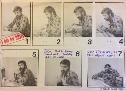 Alguém já disse que a arte correio inverte a equação quantidade/qualidade e que por isso ela não pode ser pensada desde as categorias convencionais. Toda atividade humana produz rejeitos. Eles são o índice da nossa ineficiência como espécie. Da nossa incapacidade de associação. A arte correio é uma fábrica de refugos. E uma máquina associativa. Os seus rejeitos são as grandes obras. Não deveriam ocorrer, mas ocorrem. Sob toneladas de detrito, em meio à multidão sem rostos, elas, vez por outra, ganham os holofotes. Em terras tupiniquins, poucos artistas produziram tão bons trabalhos quanto Leonhard Frank Duch. Suas ‘histórias em quadrinho’ e seus livros de artista são pequenos cristais na imensidão do caos.